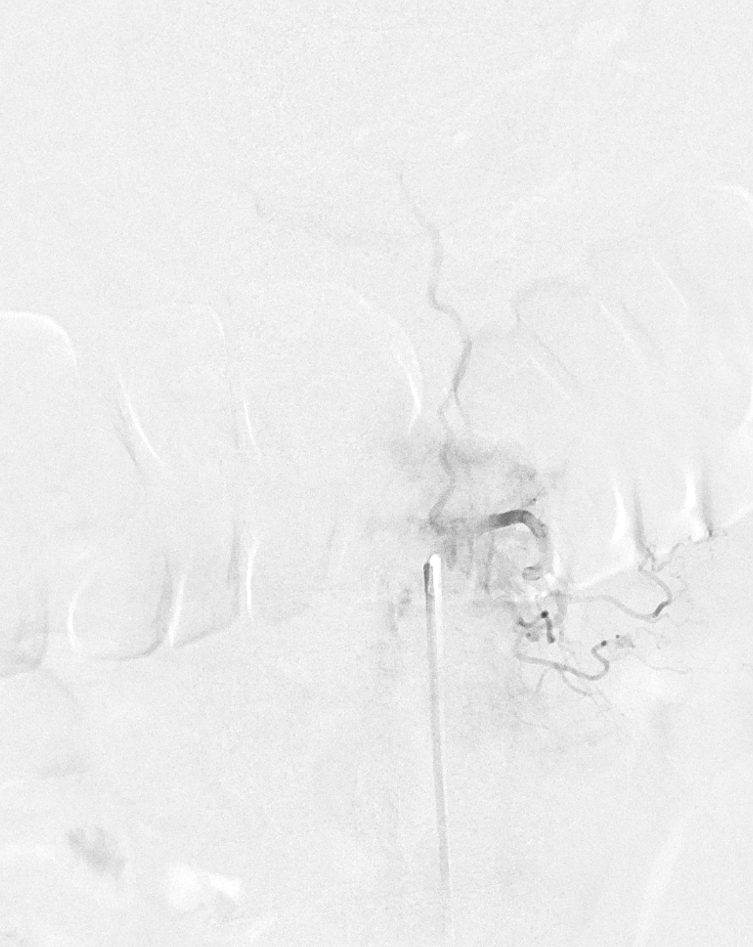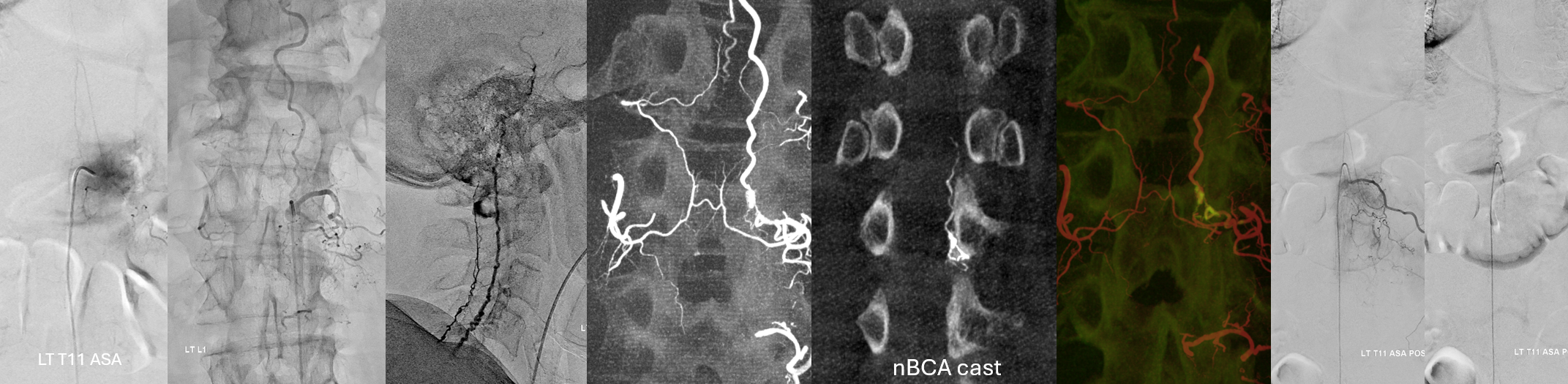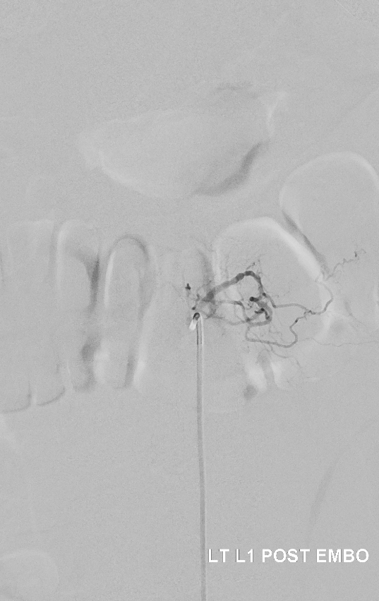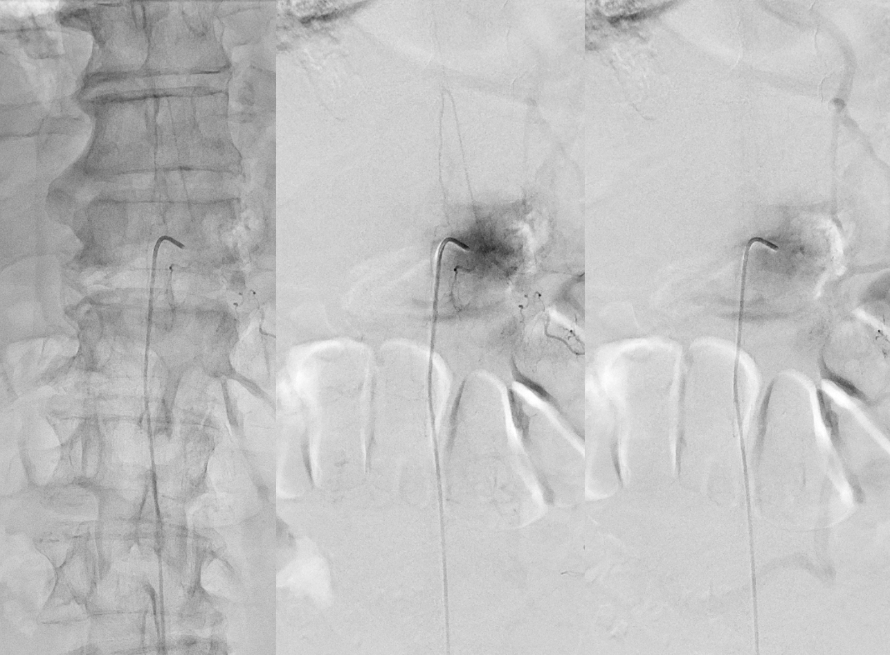 Very important to find both dominant radiculomedullary supply to the lower cord (aka Adamkiewicz) and posterior spinal arteries. In the Adamkiewicz injection, there is usually no venous phase due to fistula-related congestion. In this case, not only we dont see veins, we also don’t see the conus basket. That is frequently seen from posterior spinals, except in this case we did not see posterior spinals either. That is a concern since we don’t want to inadvertently embolize them. However, given the congestion the most likely explanation is that the basket normally opacifies from the Adamkiewicz / ASA, and is congested by fistula.